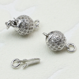 Zapięcie srebrne kula z cyrkoniami wsuwane 8mm Ag925