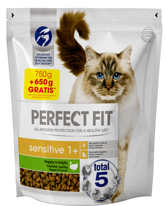 Perfect Fit Kot Adult (1+) Sensitive Sucha karma z indykiem 750g + 650