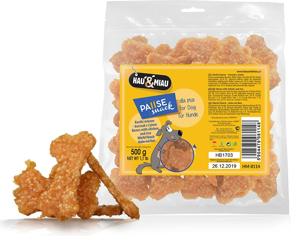Hau&Miau Kostki mięsne z kurczakiem i ryżem dla psa op. 500g
